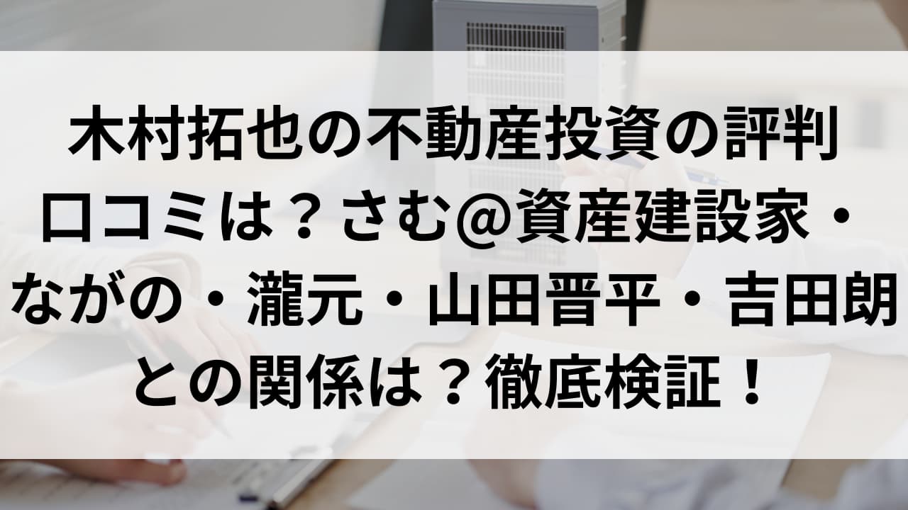 木村拓也の不動産投資の評判口コミは?さむ@資産建設家・ながの・瀧元・山田晋平・吉田朗との関係は?徹底検証!