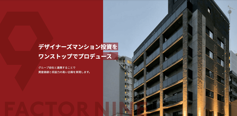株式会社ファクター・ナインは、賃貸用デザイナーズマンションの企画販売や仲介を行なっている不動産会社です。