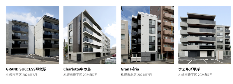 株式会社ファクター・ナインの公式ホームページからは、累計155棟の竣工実績を有していることや、いずれも北海道内の駅徒歩10分圏内の立地に供給していることが伺えます。