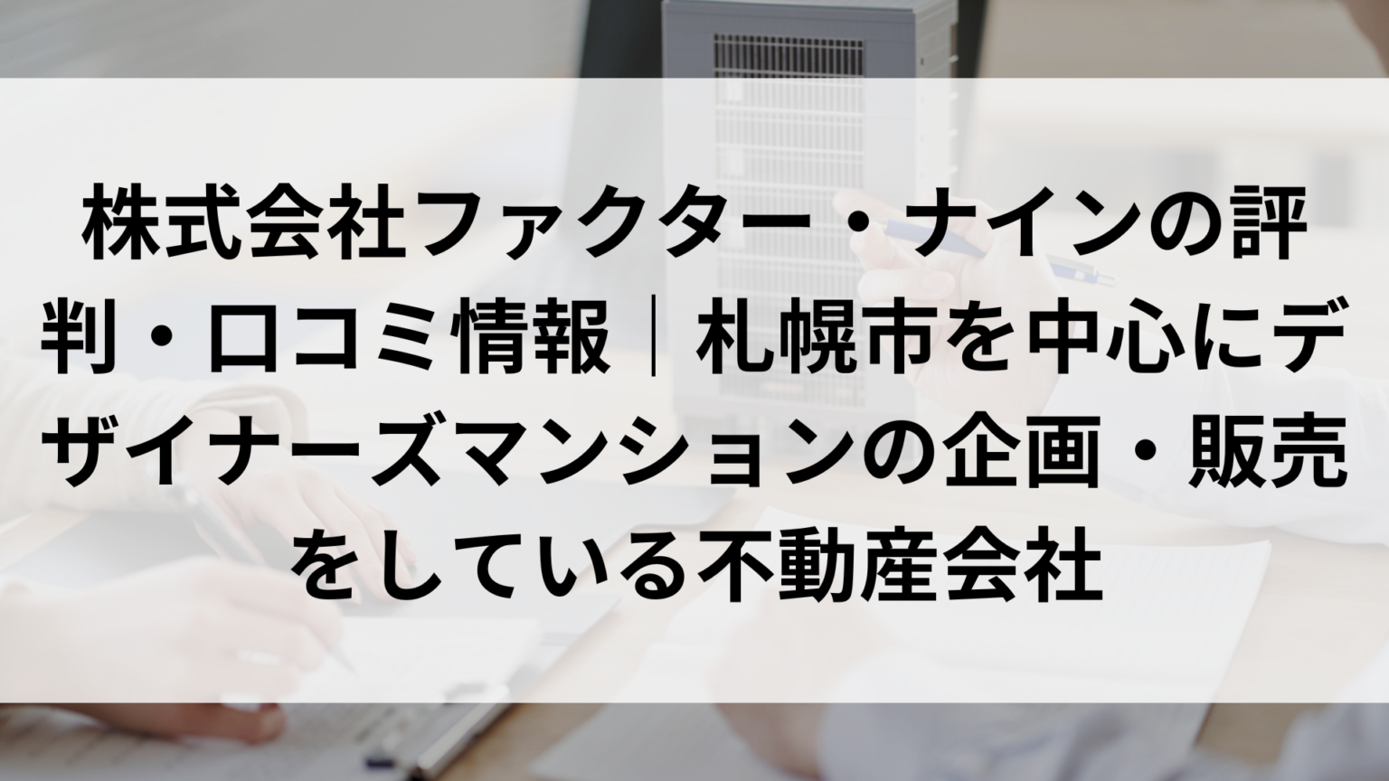 株式会社ファクター・ナインの評判・口コミ情報|札幌市を中心にデザイナーズマンションの企画・販売をしている不動産会社