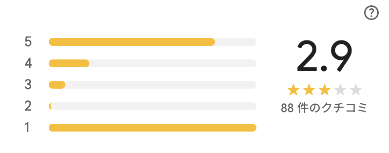 Googleの評価分布を見ると、約半分が「星1」である一方で、もう半分は「星5」がついています。