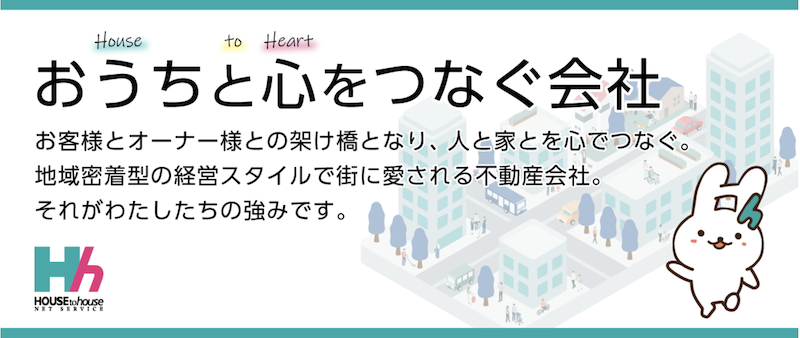 ハウス・トゥ・ハウス・ネットサービス株式会社は、賃貸仲介事業を主軸に、不動産売買や賃貸管理、リフォーム・リノベーション、コンサルティングなど幅広い不動産関連事業を行なっています。