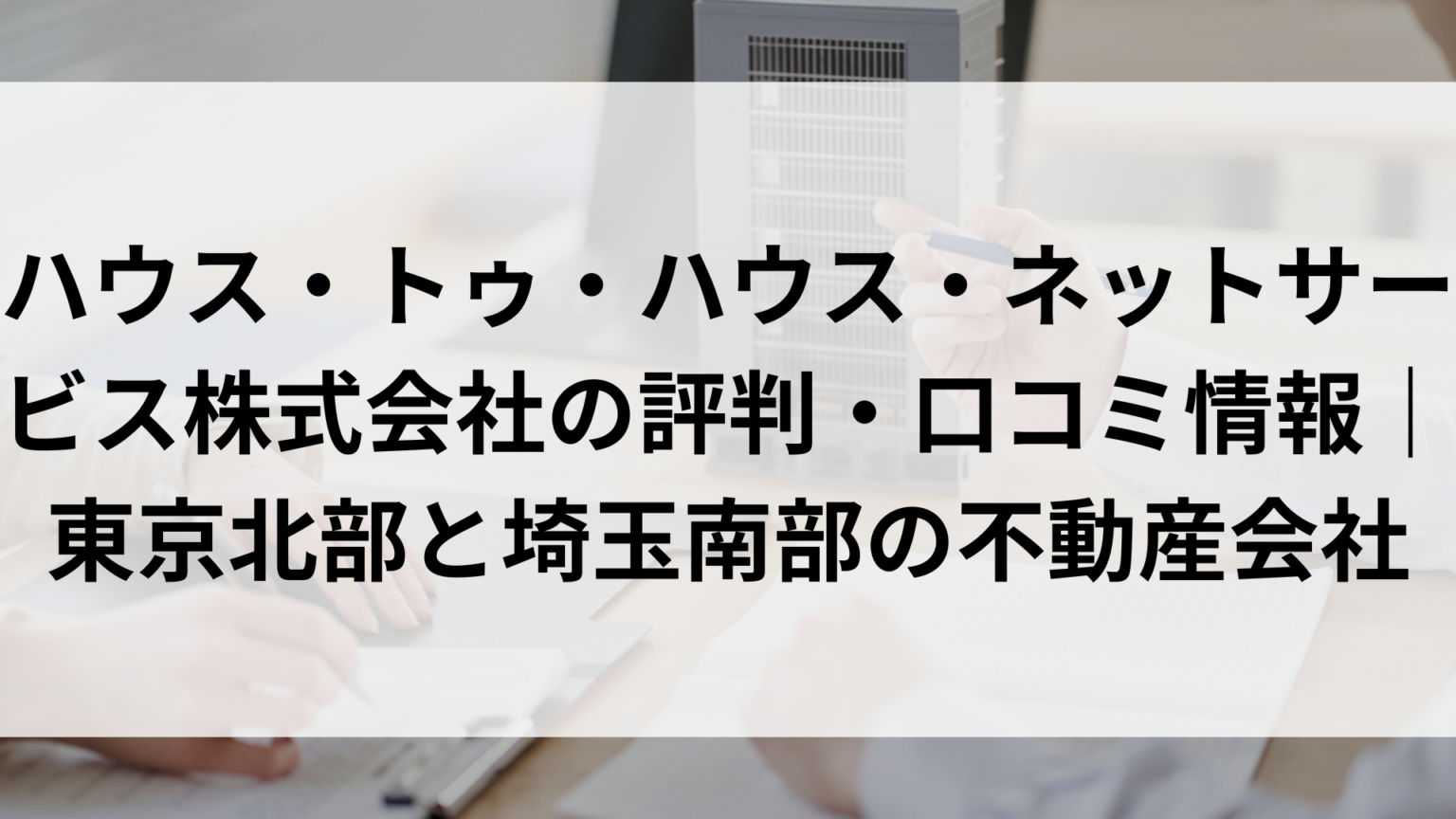 この記事では、ハウス・トゥ・ハウス・ネットサービス株式会社がどのような物件を持っていて、どのような特徴があるのか、口コミを含めて詳しく解説します。不動産投資を検討している方や、不動産会社を探している方は、ぜひ最後までご覧ください。