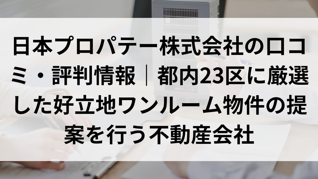 これまでの利用者の評判、口コミなどを交えて、日本プロパテー株式会社とはどんな会社なのか、どんな物件を扱っているのかを見ていきます。物件を検討中の方は参考にしてみてください。