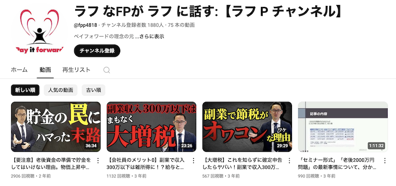 YouTubeチャンネル「ラフなFPがラフに話す:【ラフPチャンネル】」では、「自分の利益より顧客の利益の最大化」をコンセプトに、資産形成やビジネスに関する情報を発信。