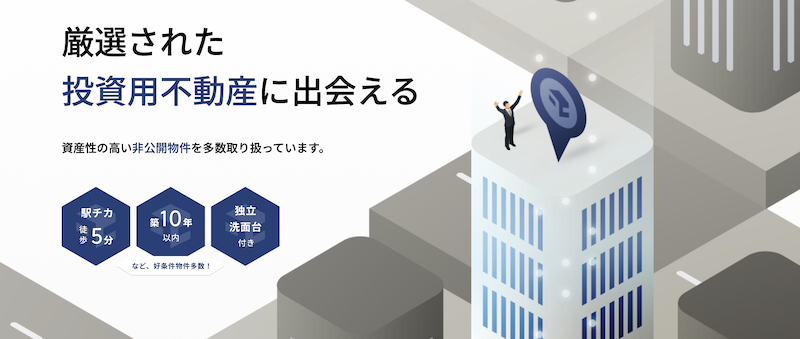 中でも、市場になかなか出回らない「駅徒歩5分圏内、築10年前後」など資産価値の高い物件のみを厳選しており、不動産の売却や運用リスクを極力抑えた手堅い資産運用が可能であると主張。