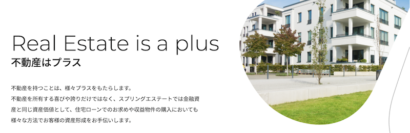 株式会社スプリングエステートは、「物件の価値の最大化を図ること」を基本と考え、実業に基づいた不動産コンサルティングを打ち出しています。
