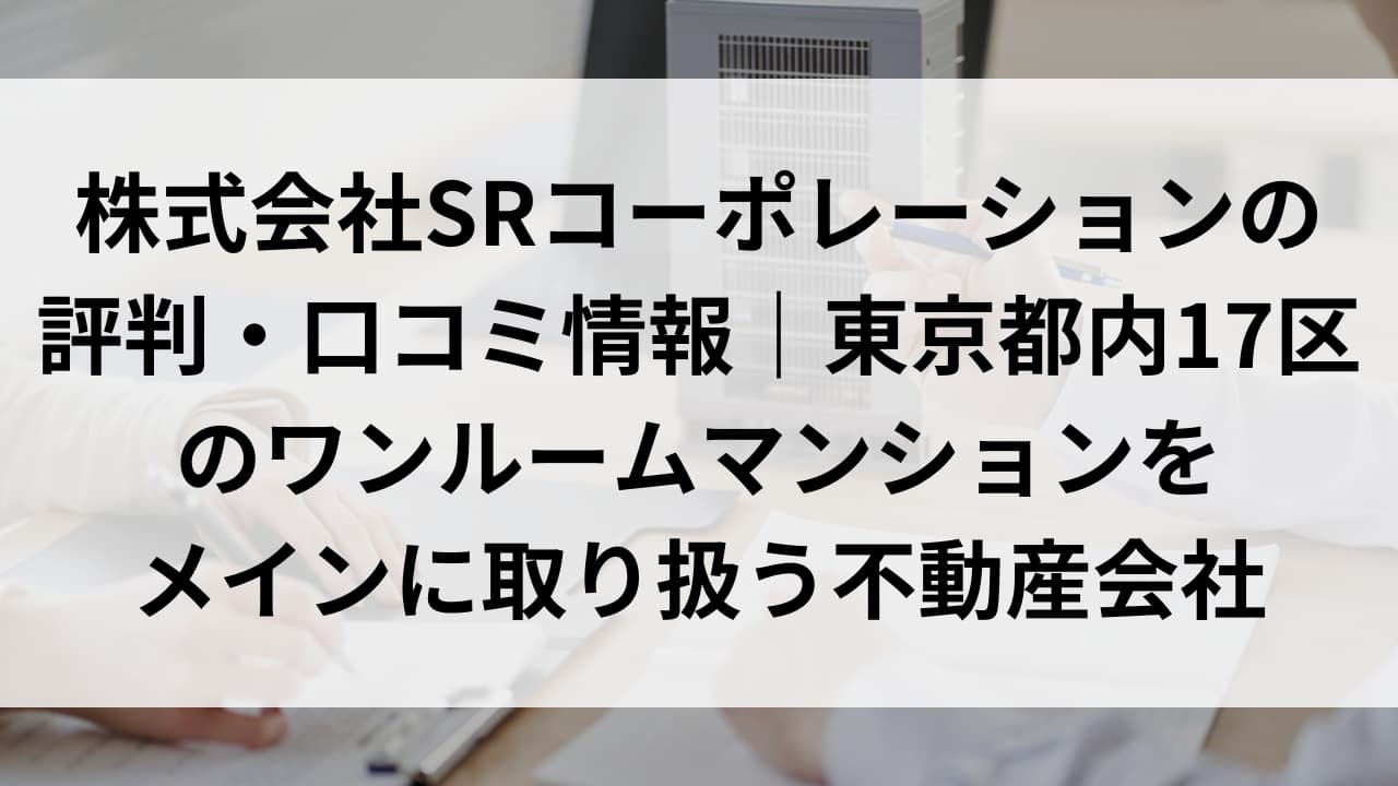 株式会社SRコーポレーションは、東京都内17区のワンルームマンションを中心に、独自の基準で厳選した物件を取り扱っていると主張する不動産会社です。