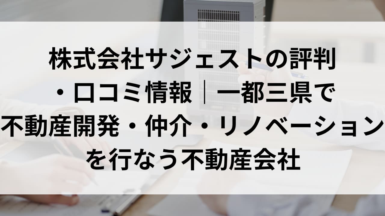 この記事では、株式会社サジェストがどのような物件を持っていて、どのような特徴があるのか、口コミを含めて詳しく解説します。不動産投資を検討している方や、不動産会社を探している方は、ぜひ最後までご覧ください。