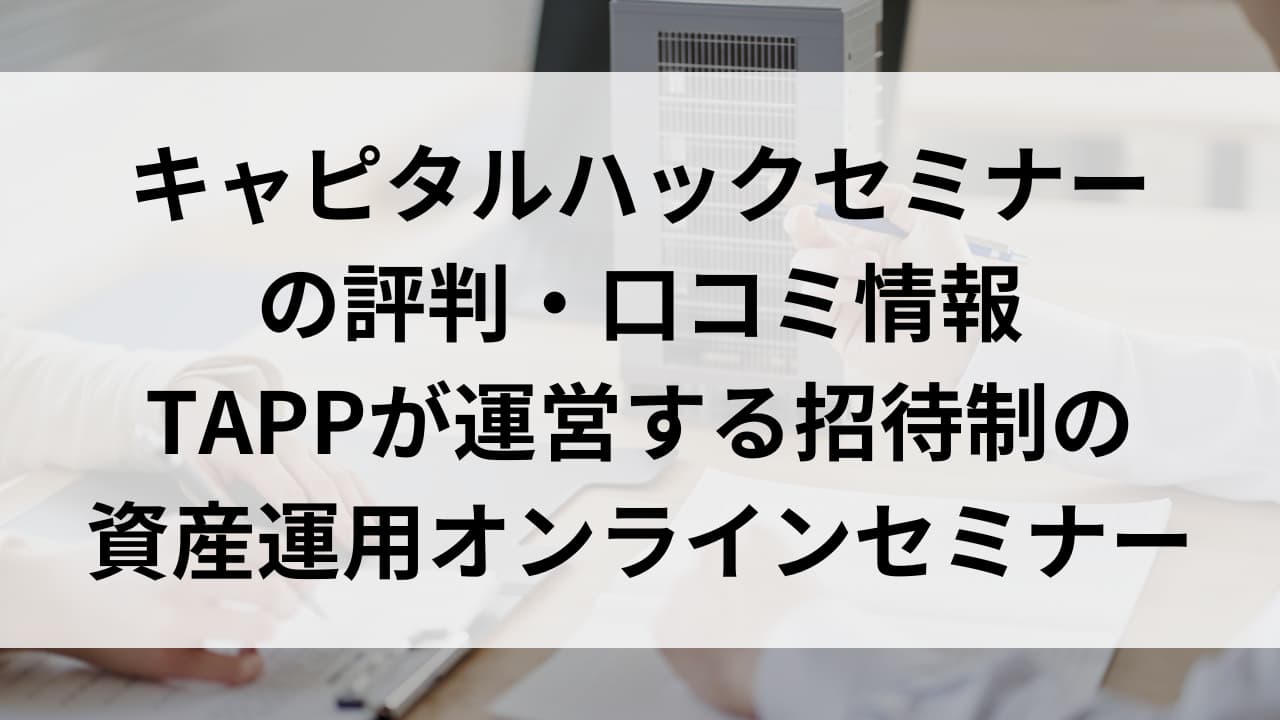 キャピタルハックセミナーは、不動産売買・仲介・管理等を行なう「株式会社TAPP」が運営している不動産投資のオンラインセミナーです。
