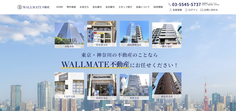 株式会社WALLMATE不動産は、東京都港区に本社を、東京都内・神奈川県内に7つの支店を構える不動産会社です。