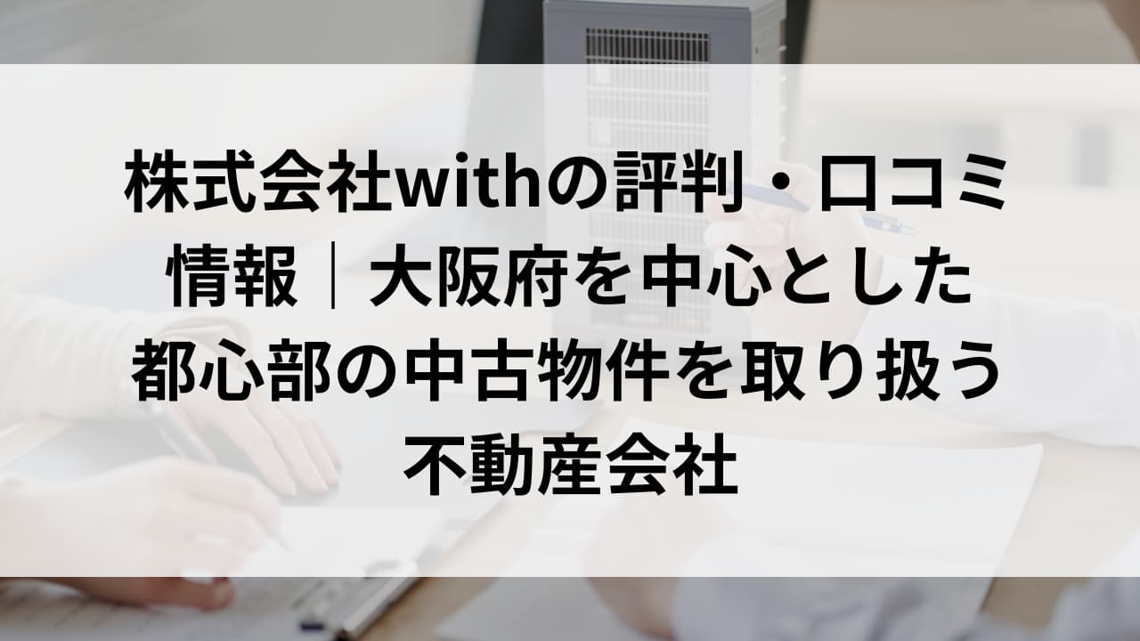 この記事では、株式会社withがどのような物件を持っていて、どのような特徴があるのか、口コミを含めて詳しく解説します。不動産投資を検討している方や、不動産会社を探している方は、ぜひ最後までご覧ください。